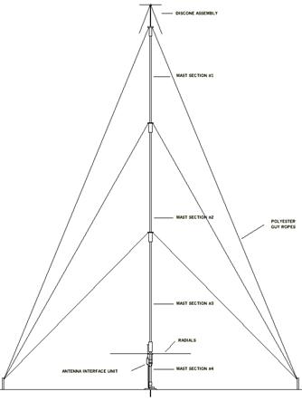 該天線是基于一個(gè)升高的饋電單極,利用附加的結(jié)構(gòu)元件,將工作頻率范圍擴(kuò)展到0.15 MHz~ 1500 MHz。具有重量輕,架設(shè)簡(jiǎn)便、占用存儲(chǔ)空間小、免維護(hù)等特點(diǎn)。